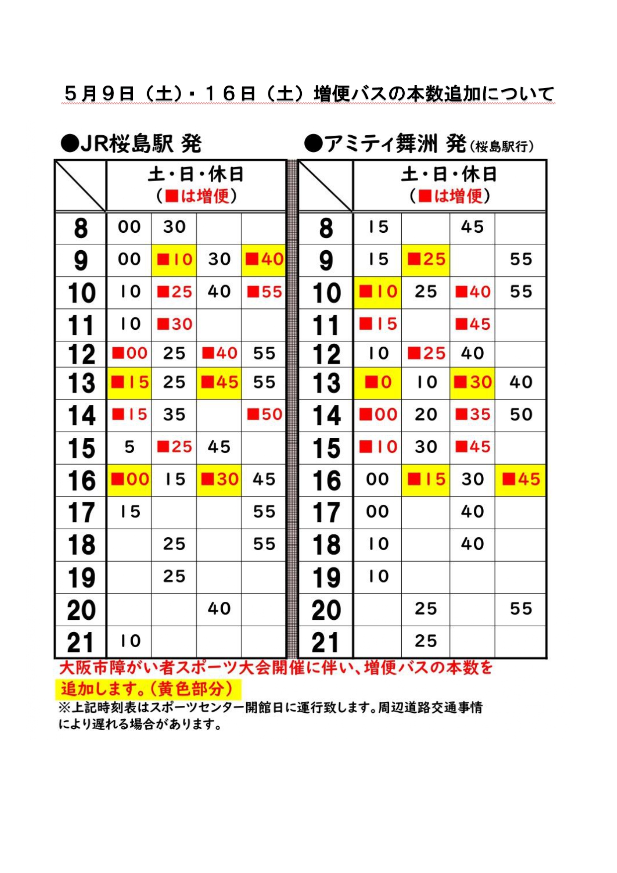 - 大阪市障がい者スポーツ開催に伴う、増便バスの本数追加について
