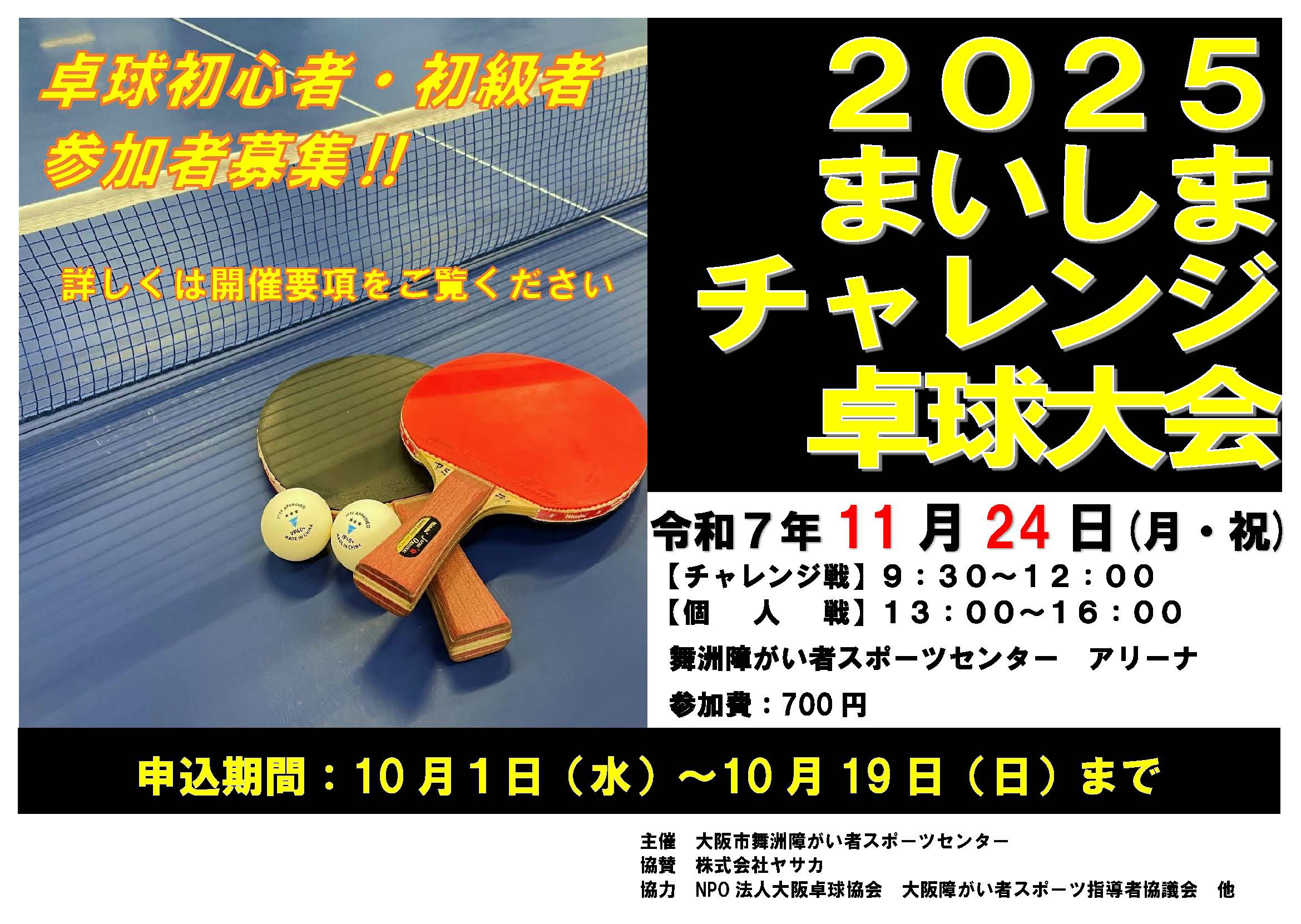 2025まいしまチャレンジ卓球大会 申込受付開始!