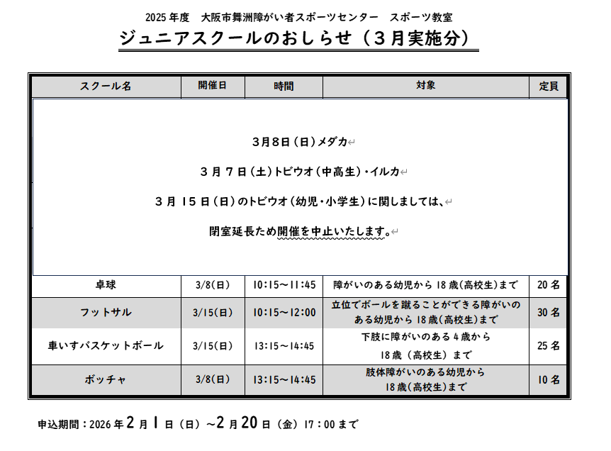 2025年度スポーツ教室 ジュニアスクール【3月実施分】