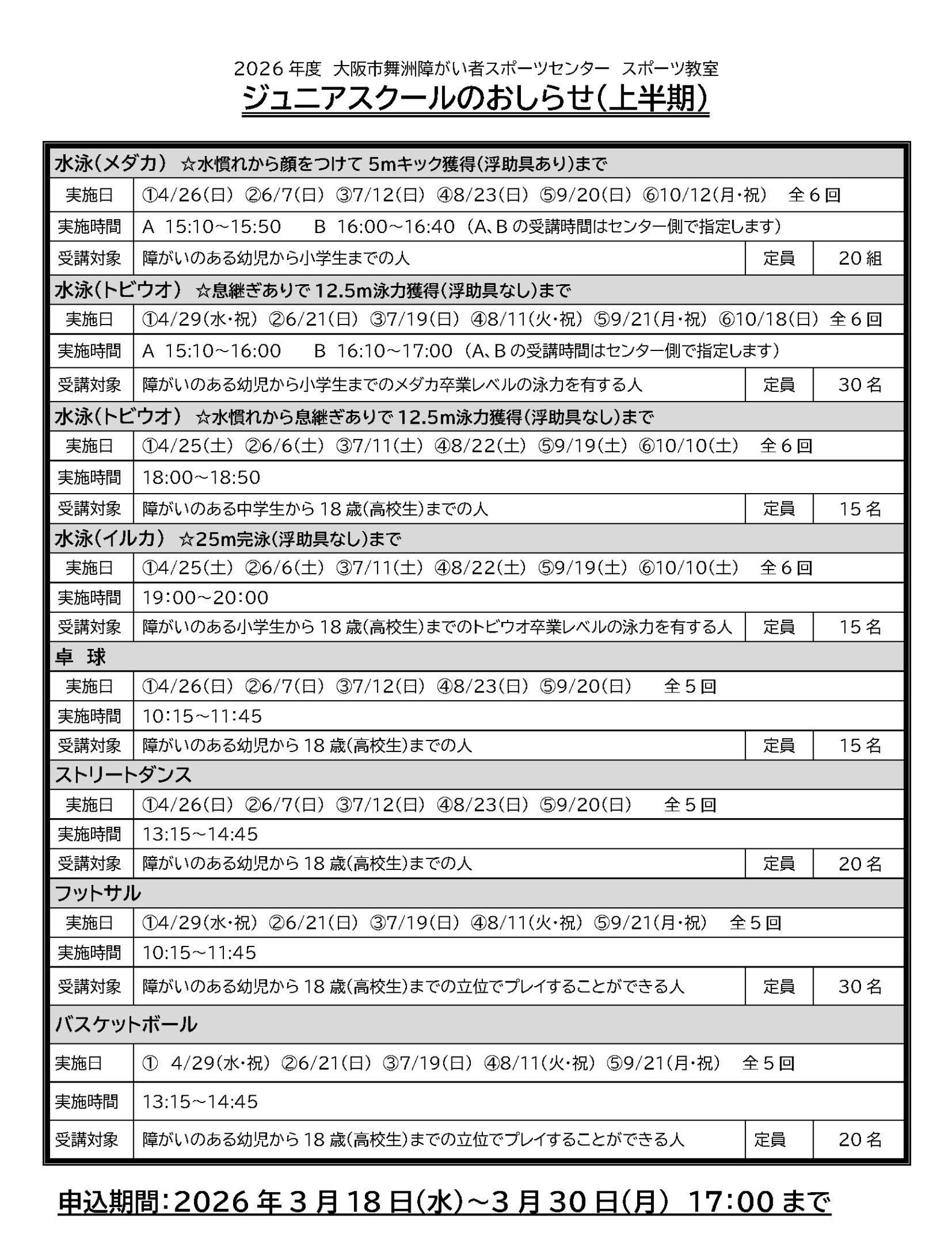 2026年度ジュニアスクール【上半期】申込受付開始!