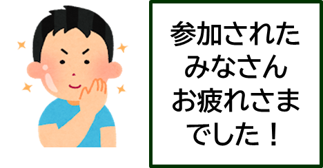 参加(さんか)された(かた)感想(かんそう)は、「(かお)()清潔(せいけつ)にしておこうと(おも)った。 洗顔(せんがん)(とく)にしっかりしようと(おも)った」「パックが気持(きも)ちよかった」「清潔(せいけつ)にして(まわ)り(の(ひと)(たち))を気持(きも)ちよくするために必要(ひつよう)(かん)じた」「()だしなみを丁寧(ていねい)にしようと(おも)った」など、今回(こんかい)(まな)びを機会(きかい)日常(にちじょう)生活(せいかつ)(なか)()だしなみを()()れていこうという肯定(こうてい)(てき)意見(いけん)(おお)かったように(かん)じました。