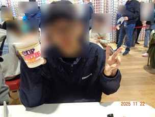 館内の「マイカップヌードルファクトリー」では、世界でひとつだけのオリジナル「カップヌードル」を作ることができる工房があり、自分でデザインしたカップに4種類の中から好みのスープと「ナゾニク」など12種類の具材から4つのトッピングを選んで、思い思いにカップヌードルを作成いただきました。