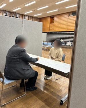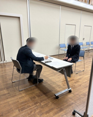 面接会はさながら本番の面接と同じような雰囲気の中、1対1の面接と振り返りがおこなわれました。