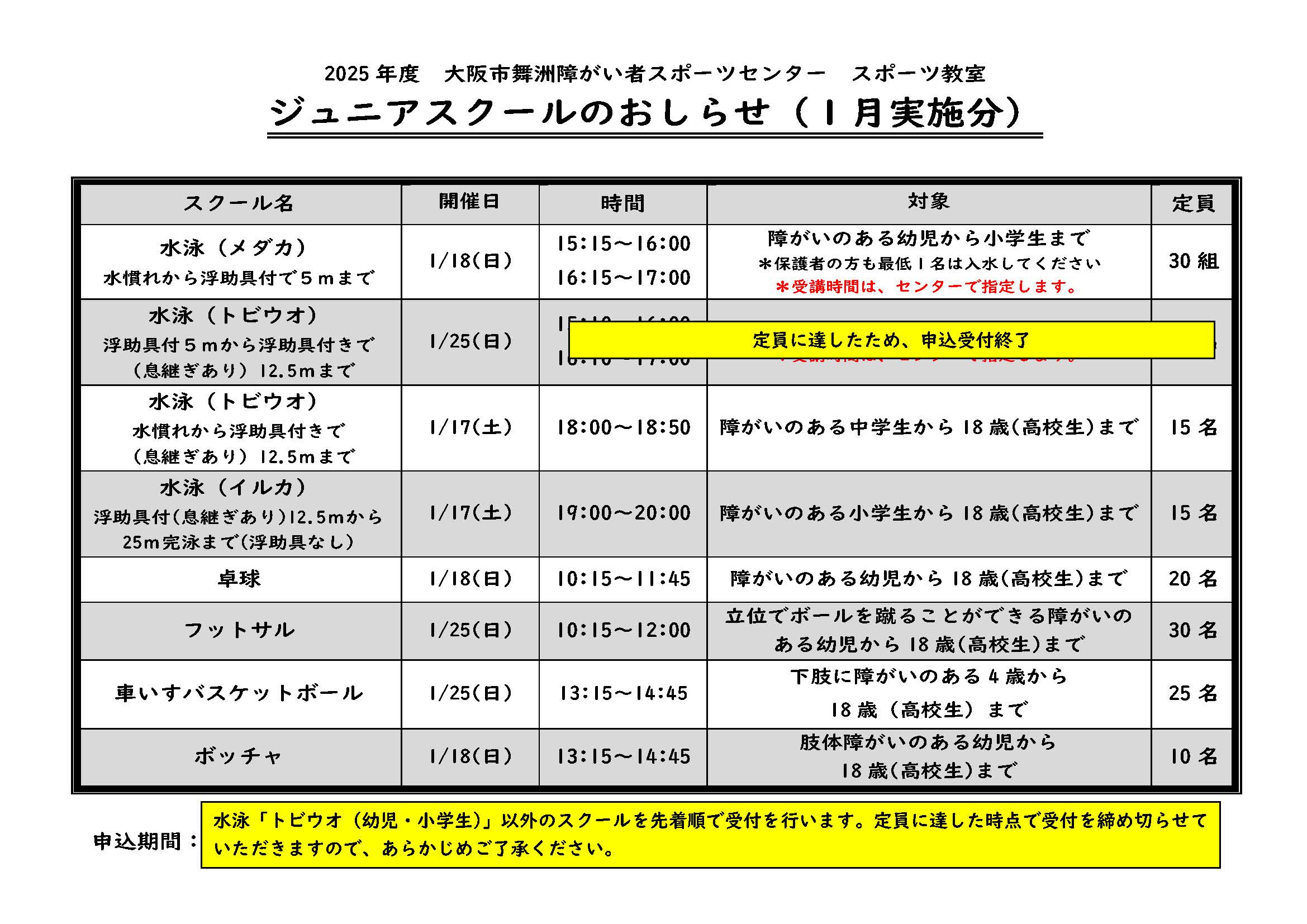 2025年度スポーツ教室 ジュニアスクール【1月実施分】申込受付延長します