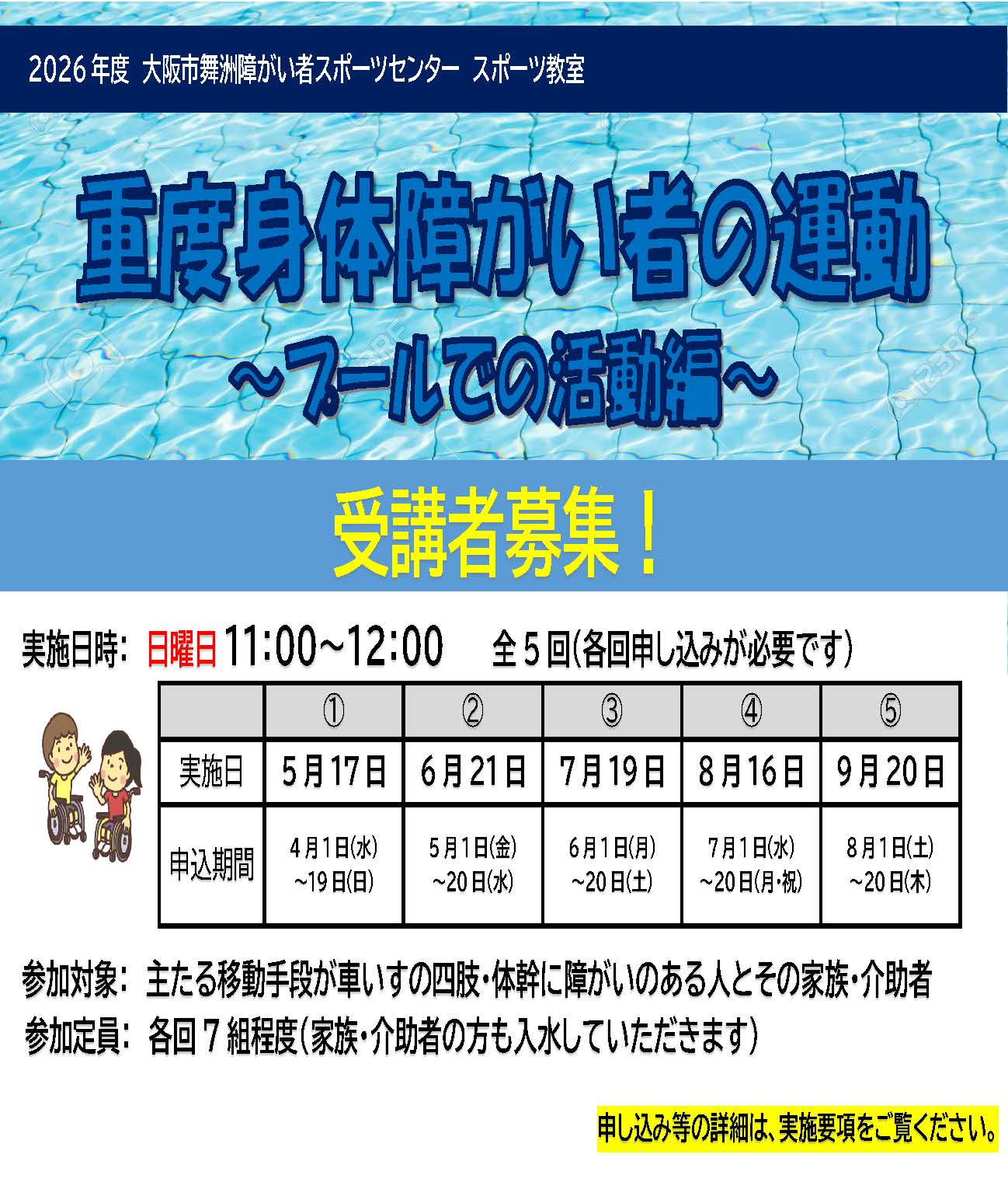 2026年度スポーツ教室 重度身体障がい者の運動(プール活動)【5月実施】